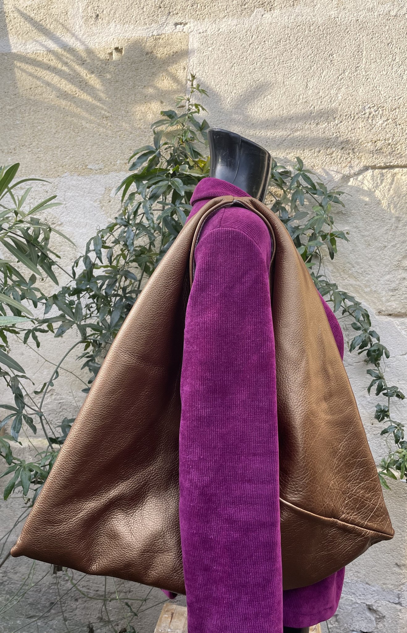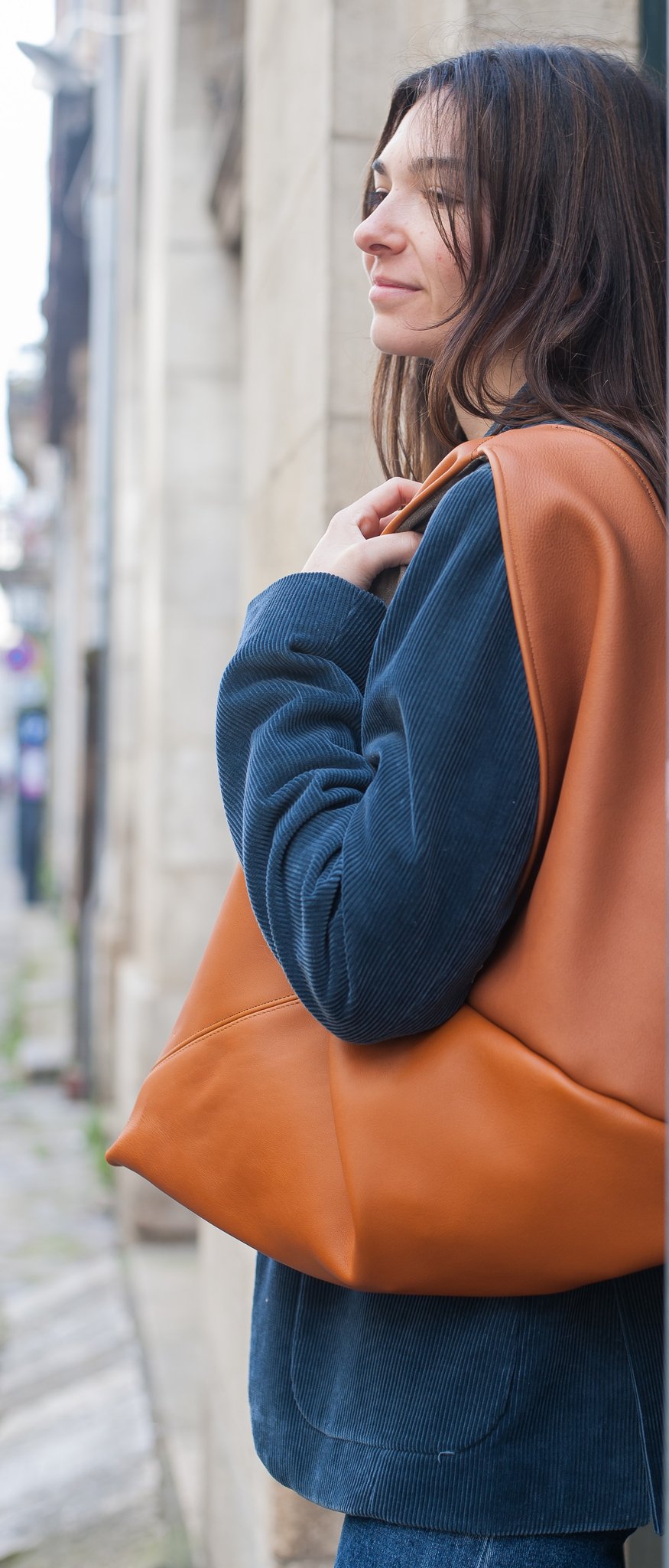 - Cuir de Vachette cognac, doublure en textile (100%lin).